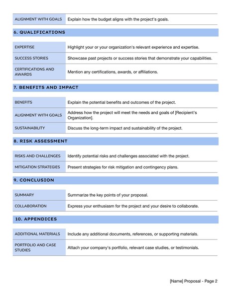 For those creating proposals regularly, using a pre-formatted, editable template helps ensure every proposal includes essential components and maintains brand consistency. It reduces manual setup while preserving professional standards.