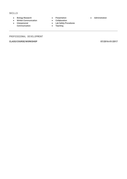 Bullet points structured around measurable outcomes, course-level responsibilities, and research focus areas
