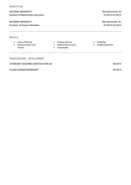 The format is particularly suited to educators who want to clearly present their classroom management skills, student learning outcomes, and curriculum development experience in a straightforward and organized manner.